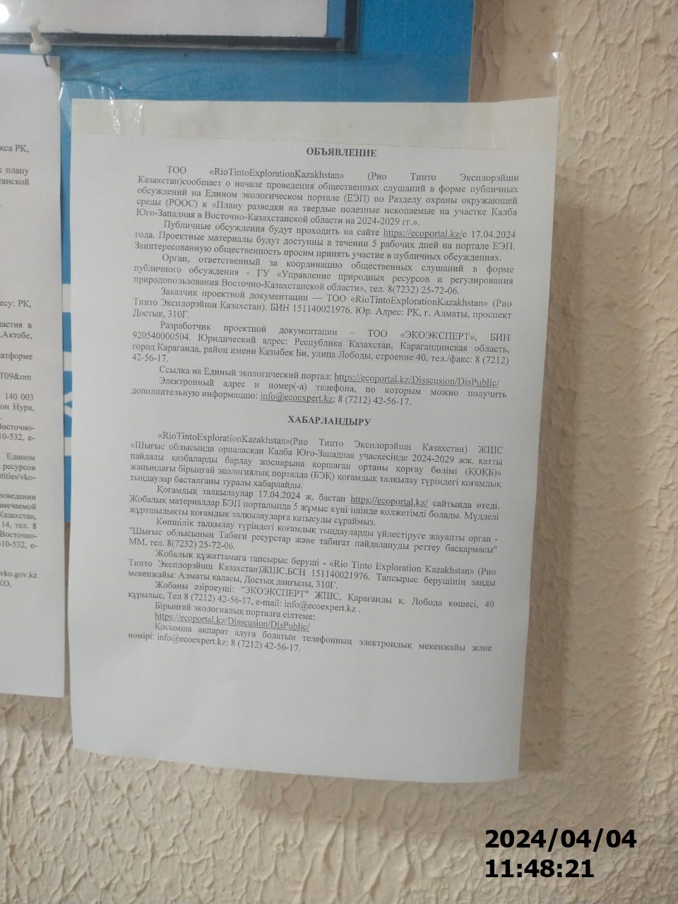 1. Инициатор: ТОВАРИЩЕСТВО С ОГРАНИЧЕННОЙ ОТВЕТСТВЕННОСТЬЮ "RIO TINTO EXPLORATION KAZAKHSTAN" (РИО ТИНТО ЭКСПЛОРЭЙШН КАЗАХСТАН)