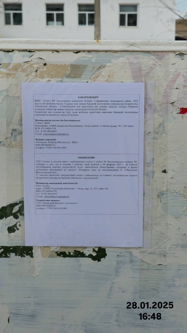 По проекту: Пожарное депо на месторождении Х. Узбекгалиев Мангистауской обл.