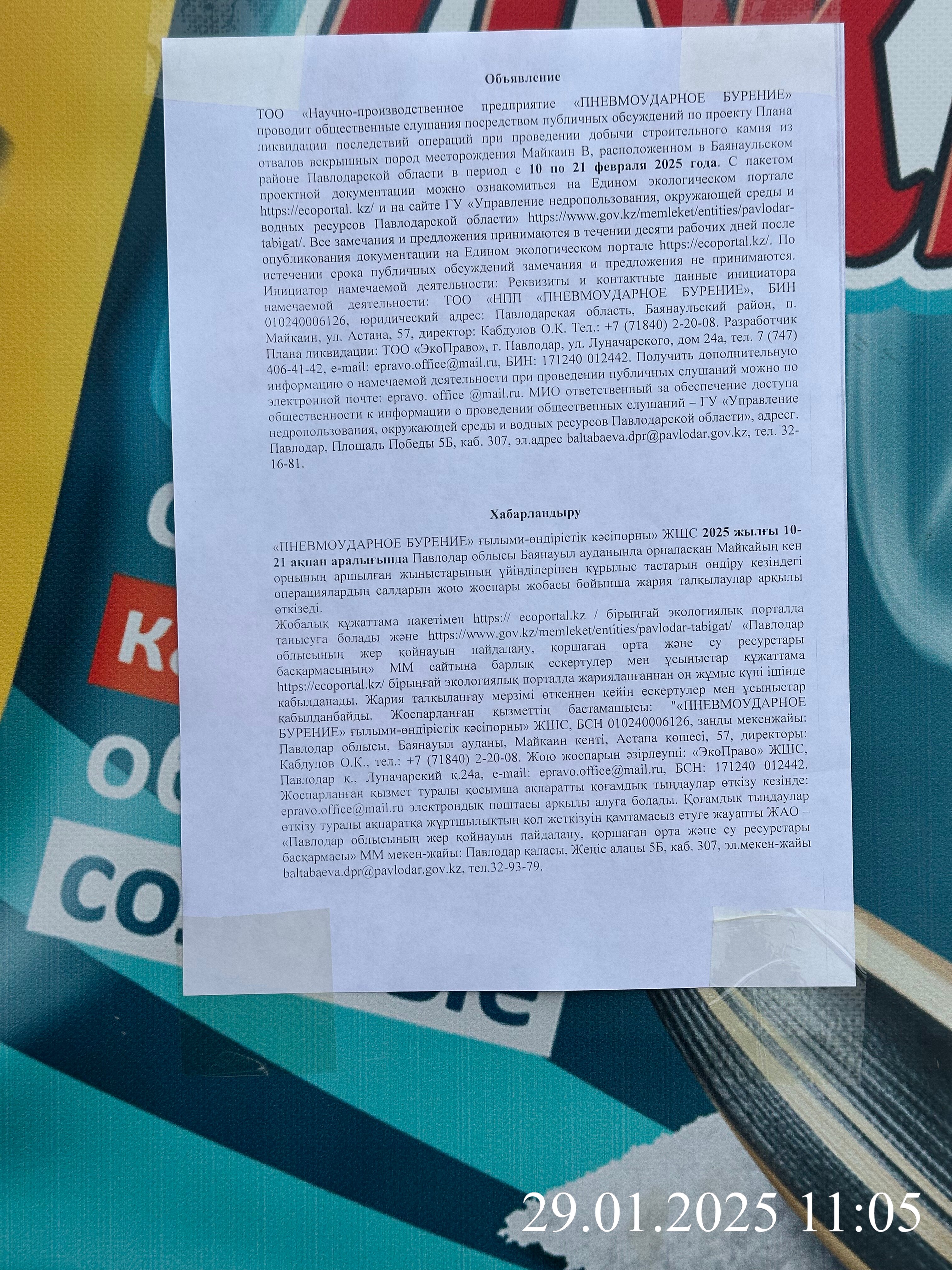 1. Инициатор: Товарищество с ограниченной ответственностью "Научно-производственное предприятие "ПНЕВМОУДАРНОЕ БУРЕНИЕ"