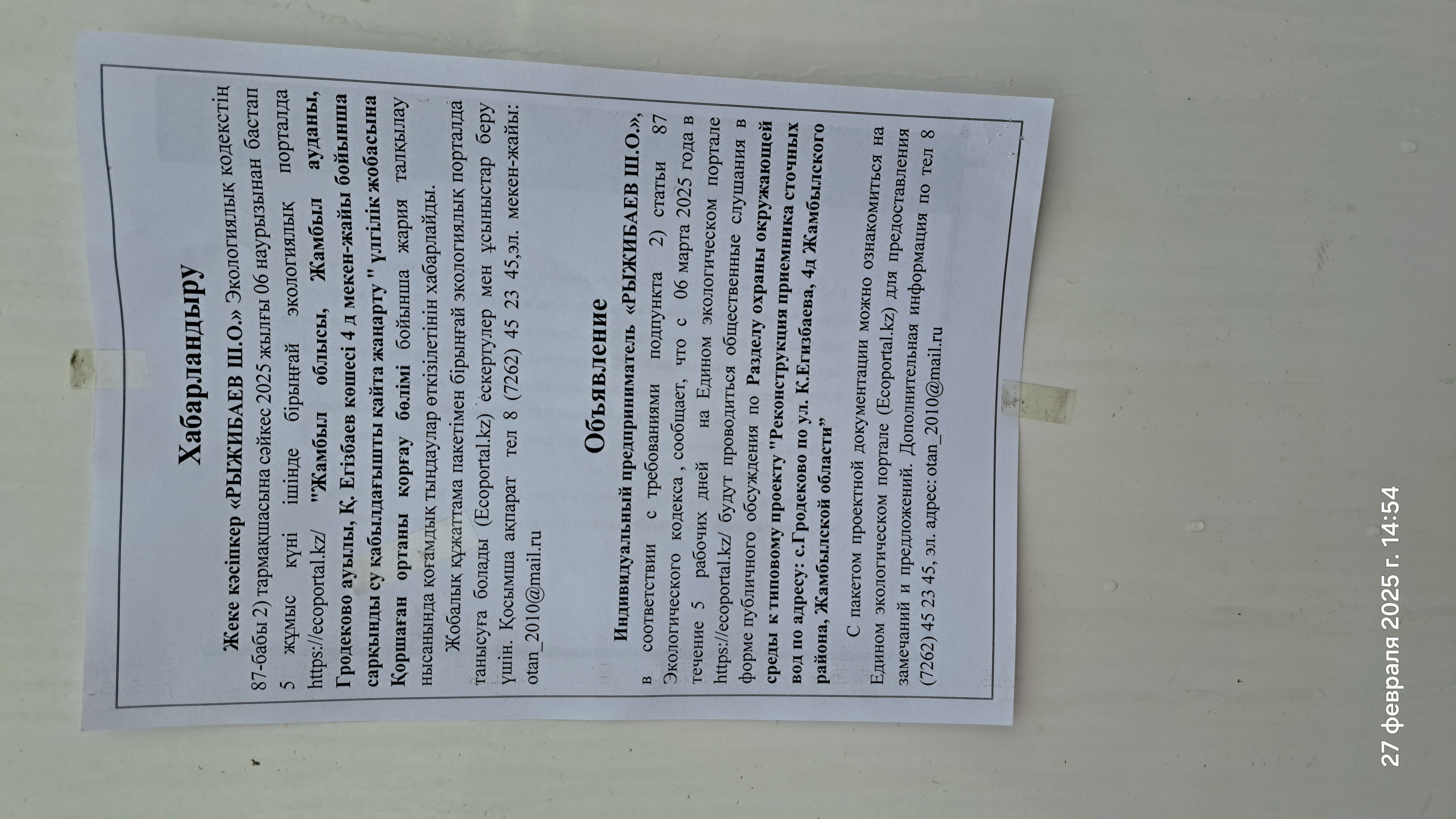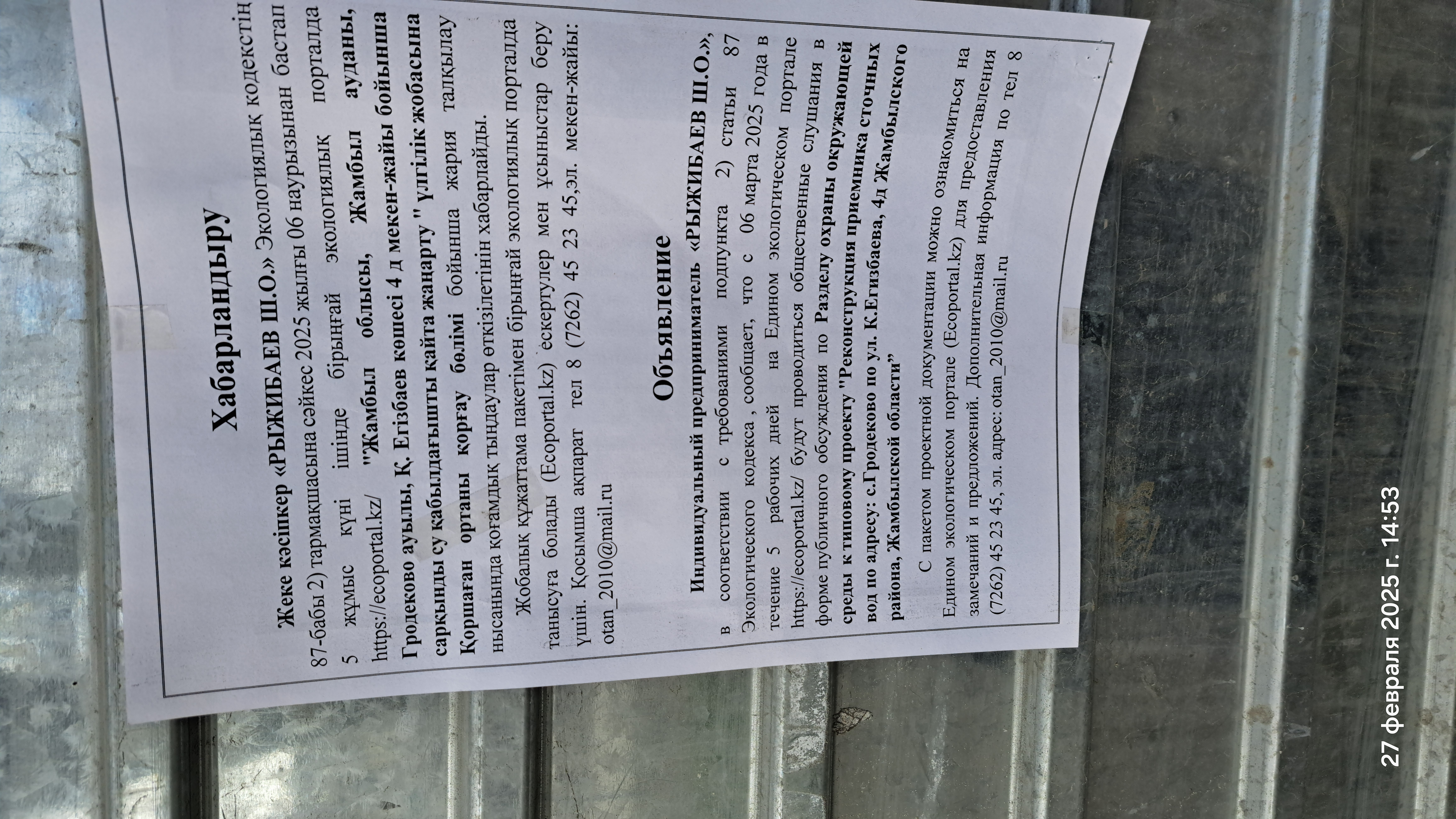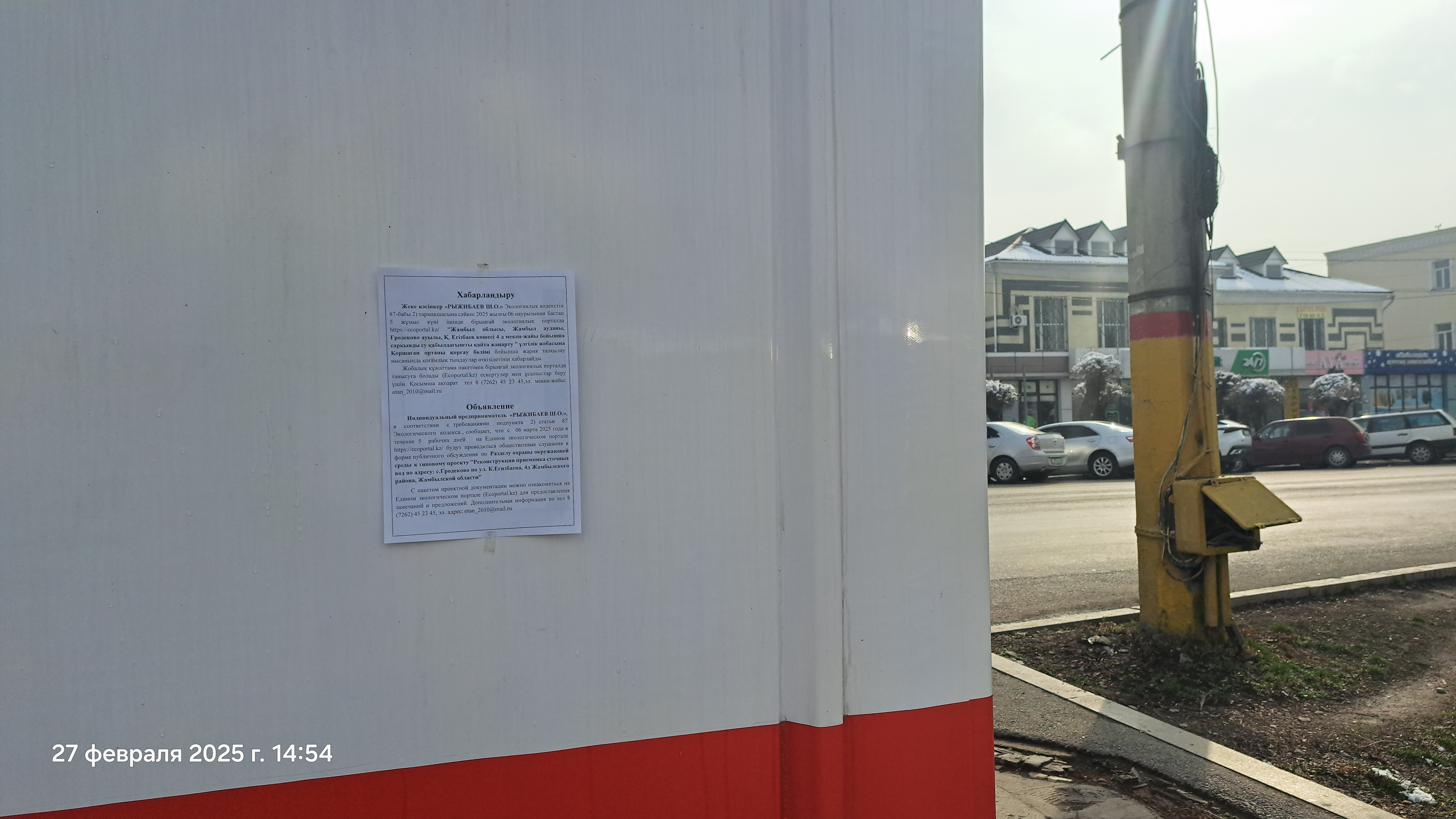 По проекту: Раздел охраны окружающей среды к типовому проекту "Реконструкция приемника сточных вод по адресу: с.Гродеково по ул. К.Егизбаева, 4Д, Жамбылского района, Жамбылской области