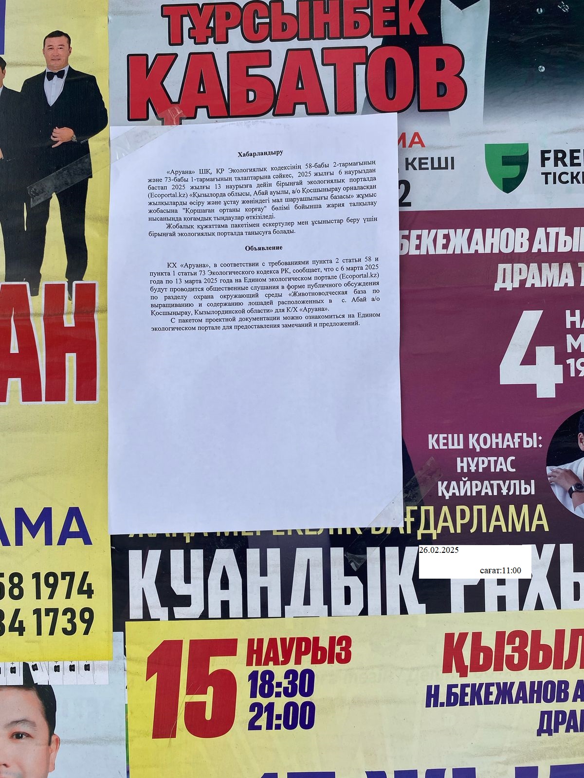 По проекту: Раздел охраны окружающей среды «Животноводческая база по выращиванию и содержанию лошадей расположенных в с. Абай а/о Қосшыңырау, Кызылординской области» для К/Х «Аруана»