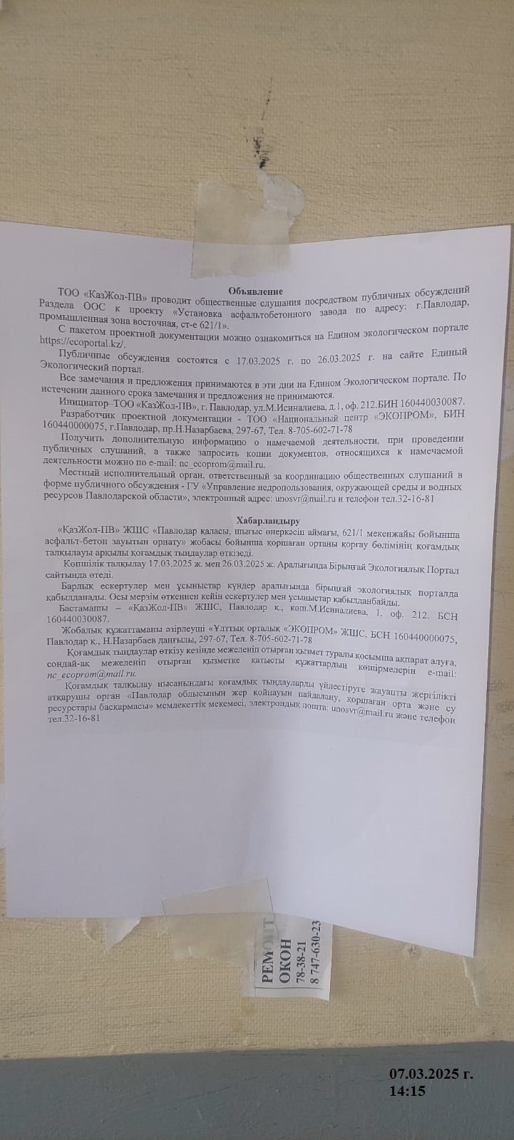 2. Период проведения общественных слушаний: 17/03/2025 - 27/03/2025
