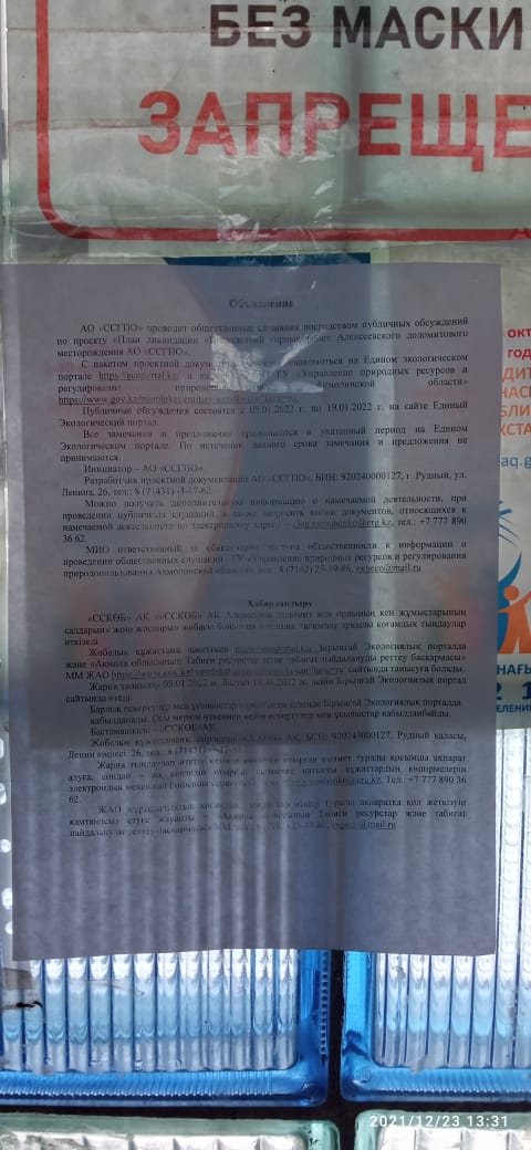 2. Период проведения общественных слушаний: 05/01/2022 - 21/01/2022