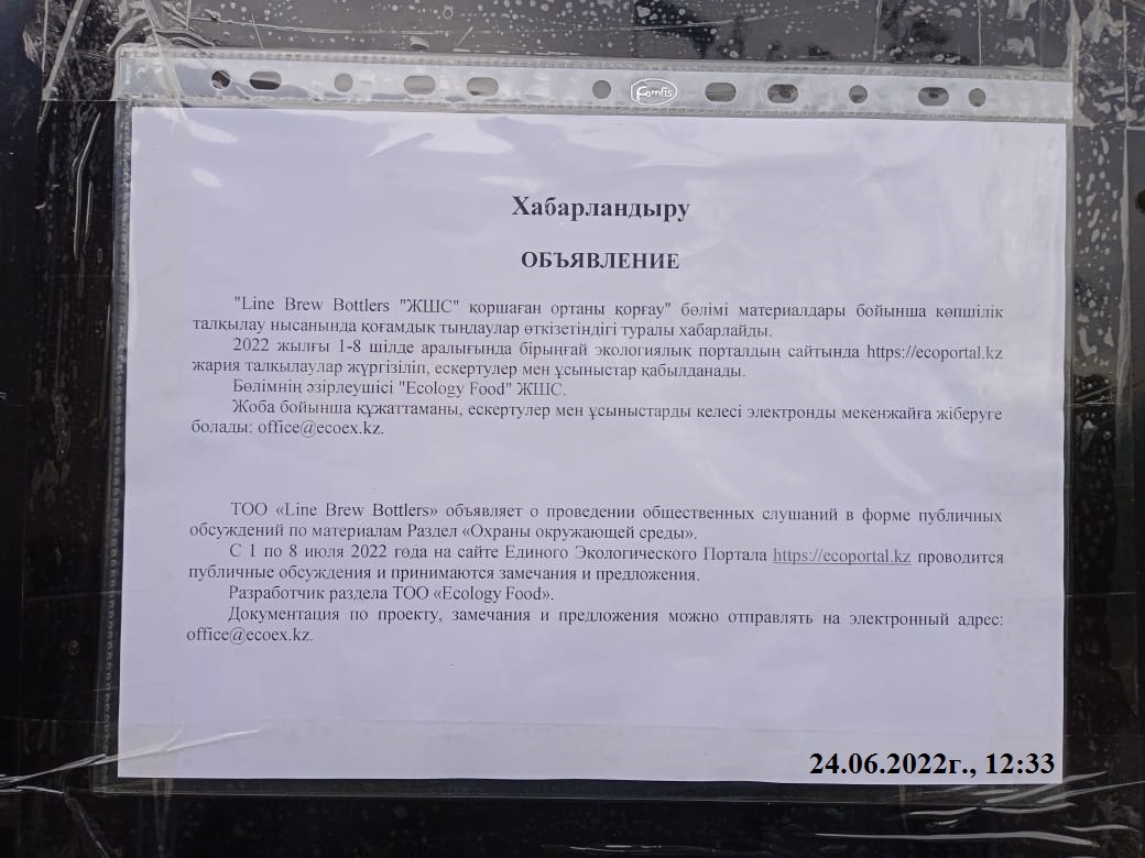 1. Инициатор: ТОВАРИЩЕСТВО С ОГРАНИЧЕННОЙ ОТВЕТСТВЕННОСТЬЮ "LINE BREW BOTTLERS"