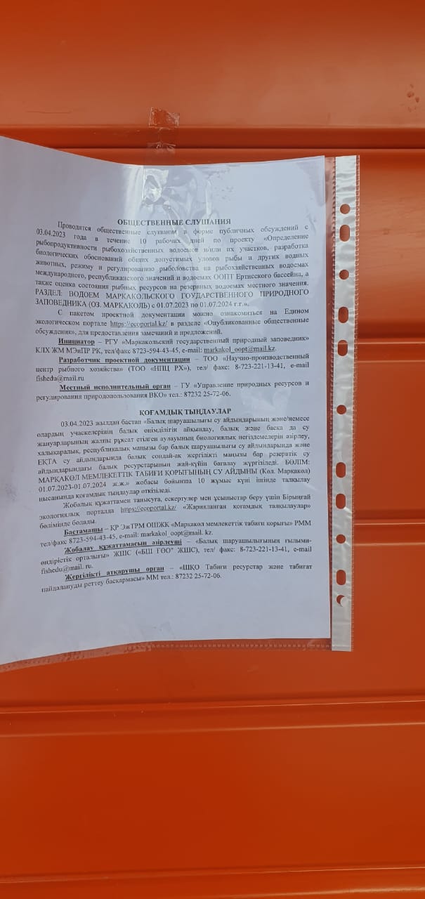 1.3. Контакты:markakol_oopt@mail.ru; https:// ecoportal.kz/ в разделе «Общественные слушания»;