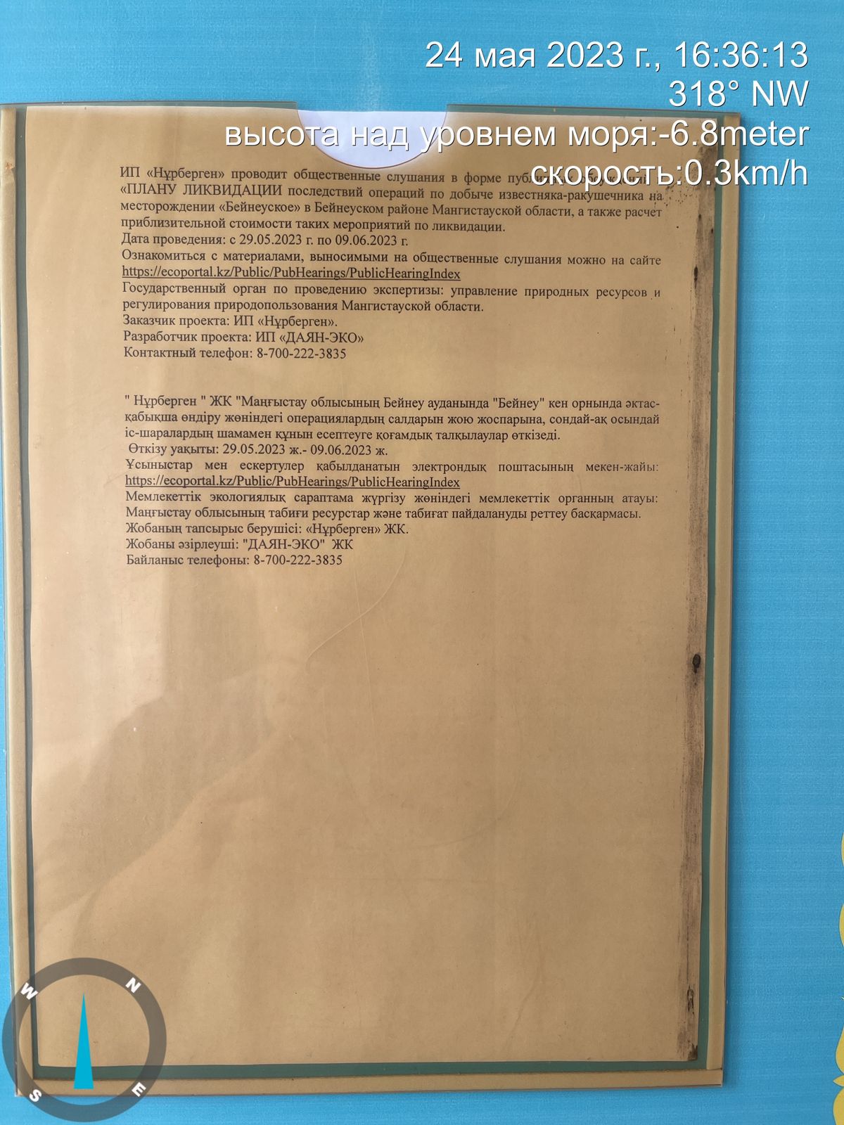 По проекту: План ликвидации и расчет приблизительной стоимости ликвидации последствий операций по добыче известняка-ракушечника на месторождении «Бейнеуское» в Бейнеуском районе Мангистауской области