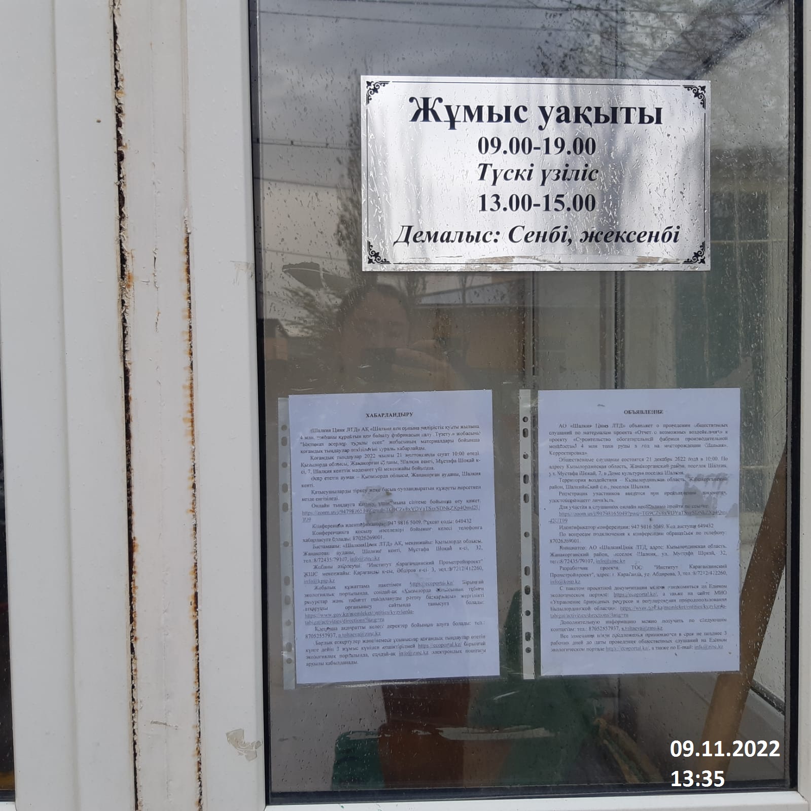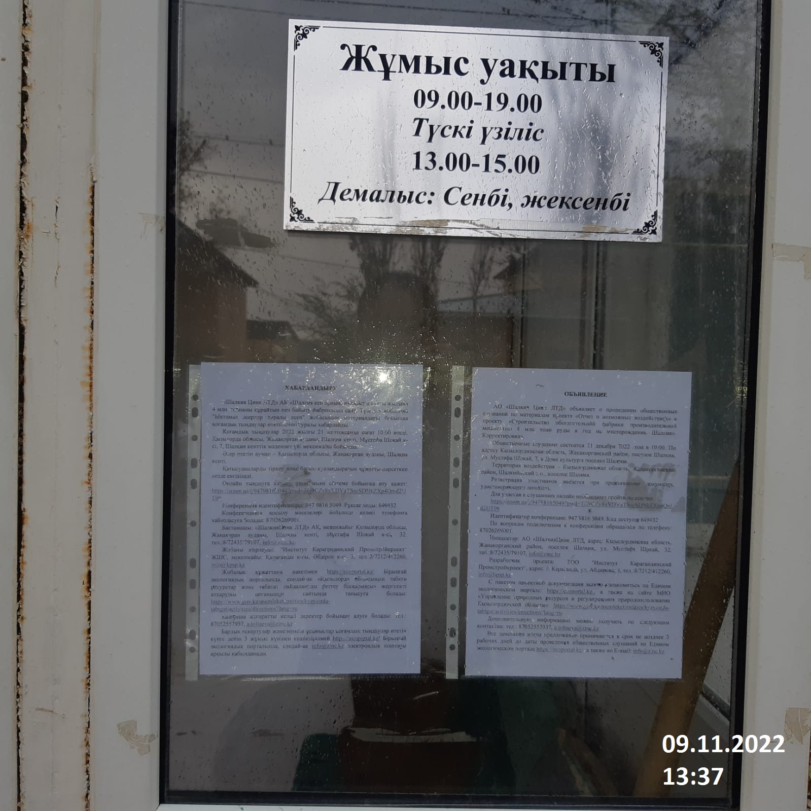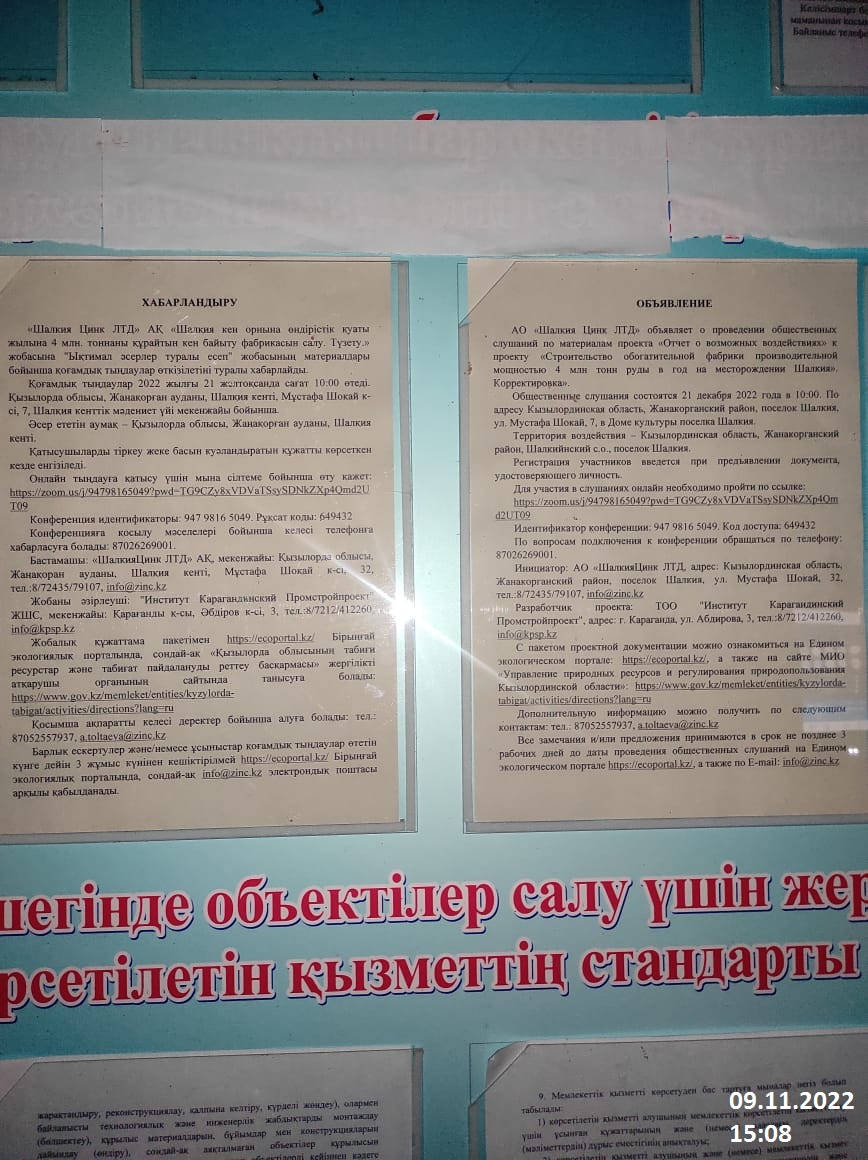 3. Общественные слушания организованны: Управление природных ресурсов и регулирования природопользования Кызылординской области, ar.zholdasbekova@korda.gov.kz,