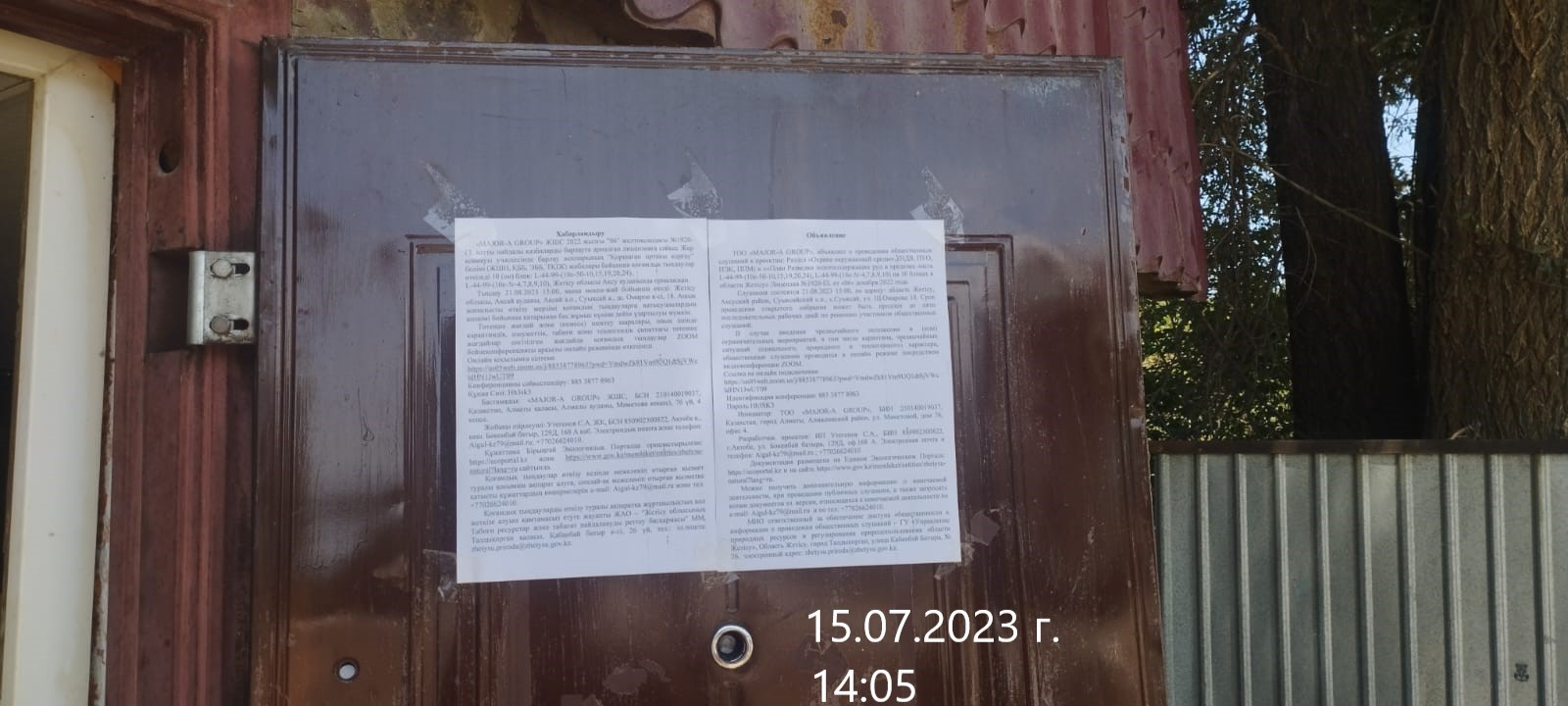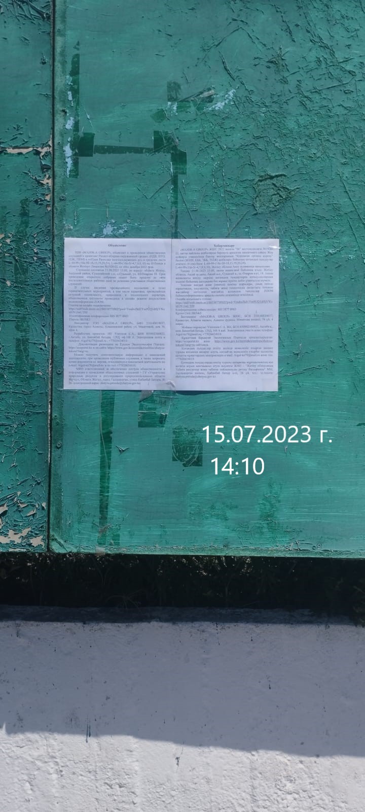 6. Объявление о проведении общественных слушаний на казахском и русском языках будет распространено следующими способами: