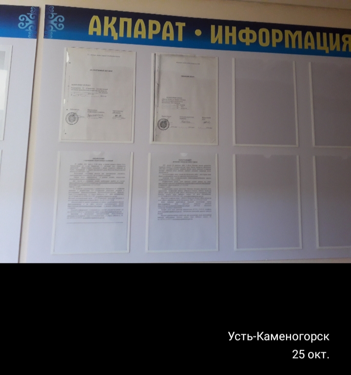 6.3. расположение мест, специально предназначенных для Размещения печатных объявлений (доски объявлений): Доска объявлений акимата г. Усть-Каменогорск