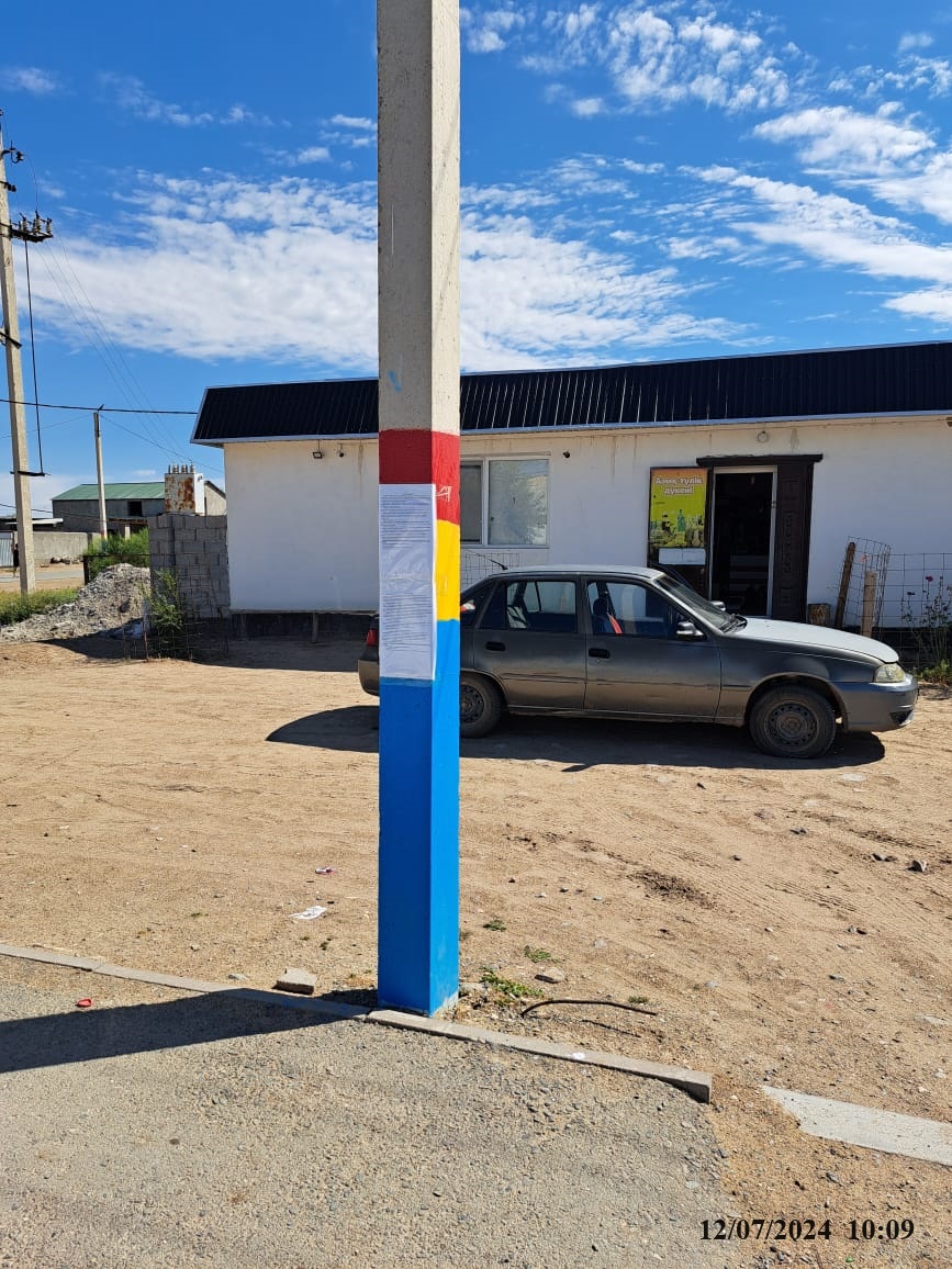 6.3. расположение мест, специально предназначенных для Размещения печатных объявлений (доски объявлений): Доска объявлений Акимата в с. Тасты