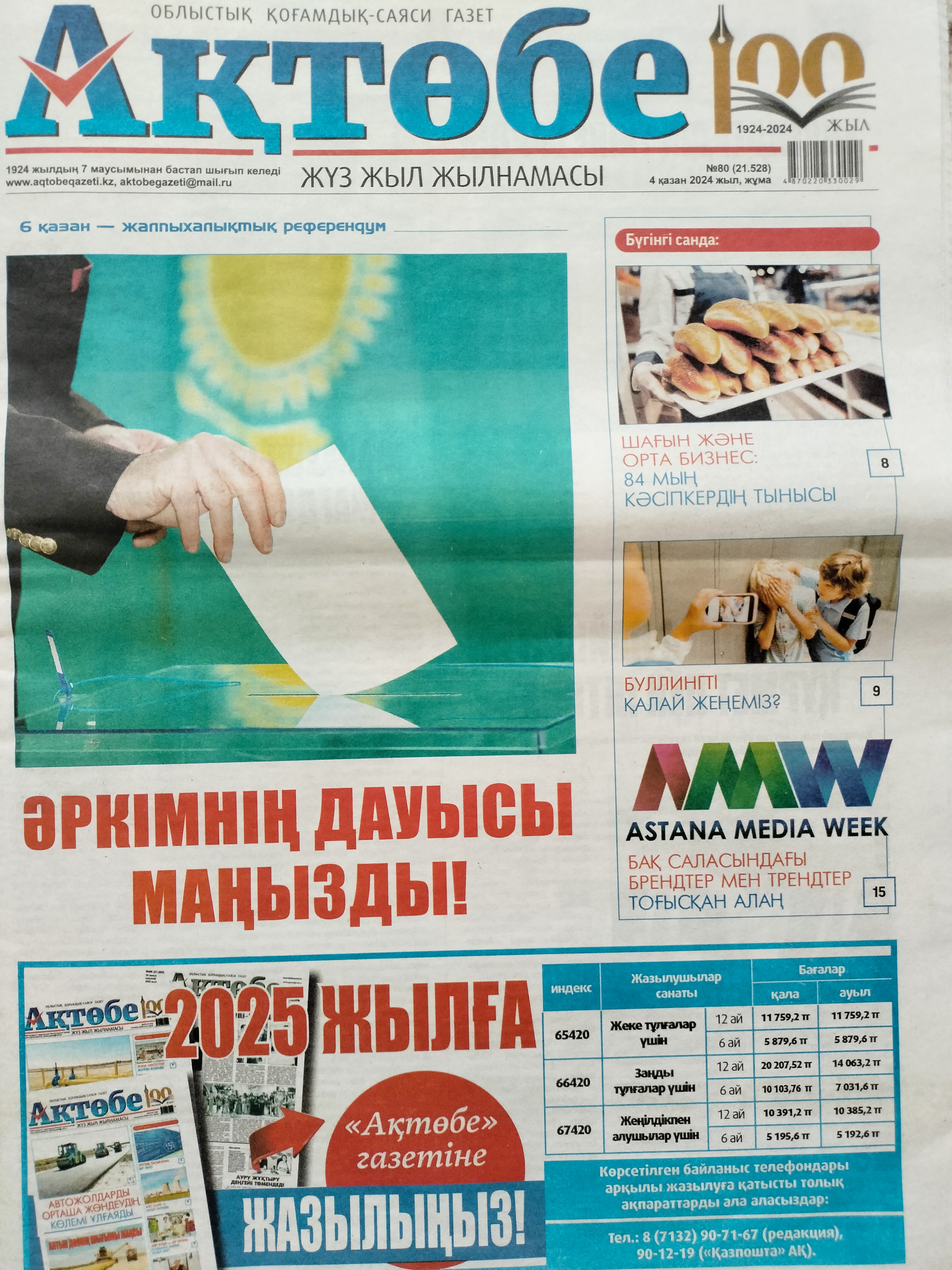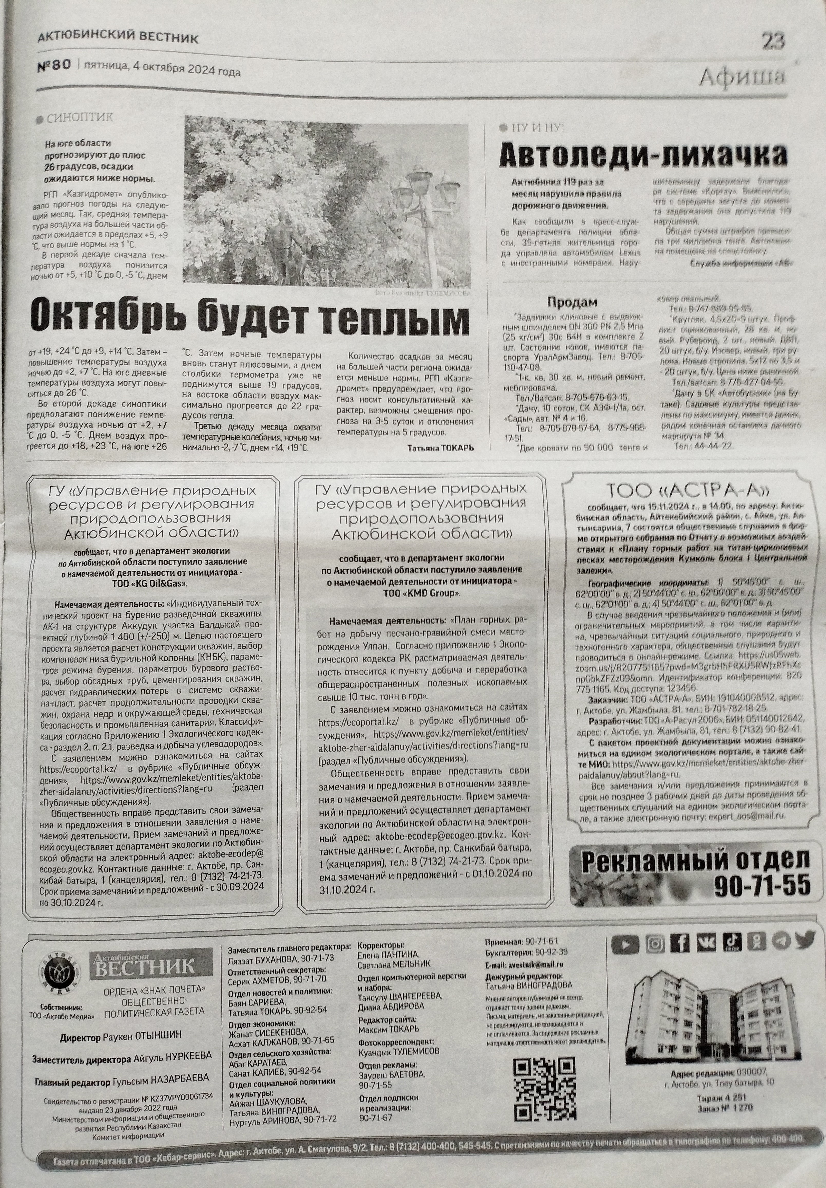 6.1. Наименование газеты, где будет размещено объявление: газета Ақтөбе, Актюбинский вестник