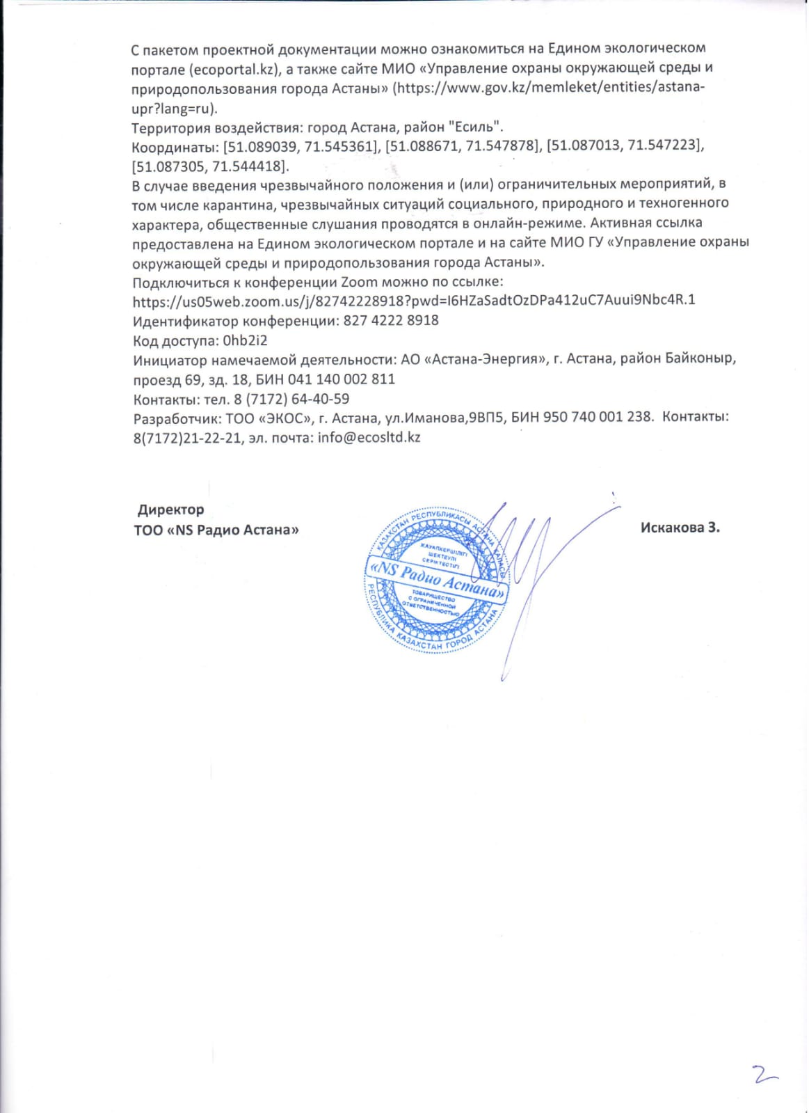 1. Инициатор: АКЦИОНЕРНОЕ ОБЩЕСТВО "АСТАНА-ЭНЕРГИЯ"