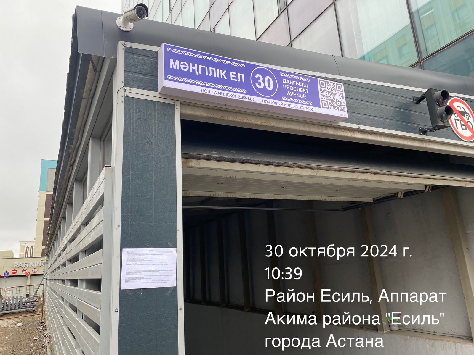 6.3. расположение мест, специально предназначенных для Размещения печатных объявлений (доски объявлений): г. Астана, ул. Мангилик Ел 30. Информационный стенд ГУ "АППАРАТ АКИМА РАЙОНА "ЕСИЛЬ" ГОРОДА АСТАНА; г. Астана, ул. Мангилик Ел 40/2, доска объявлений Жилого комплекса Коркем 4