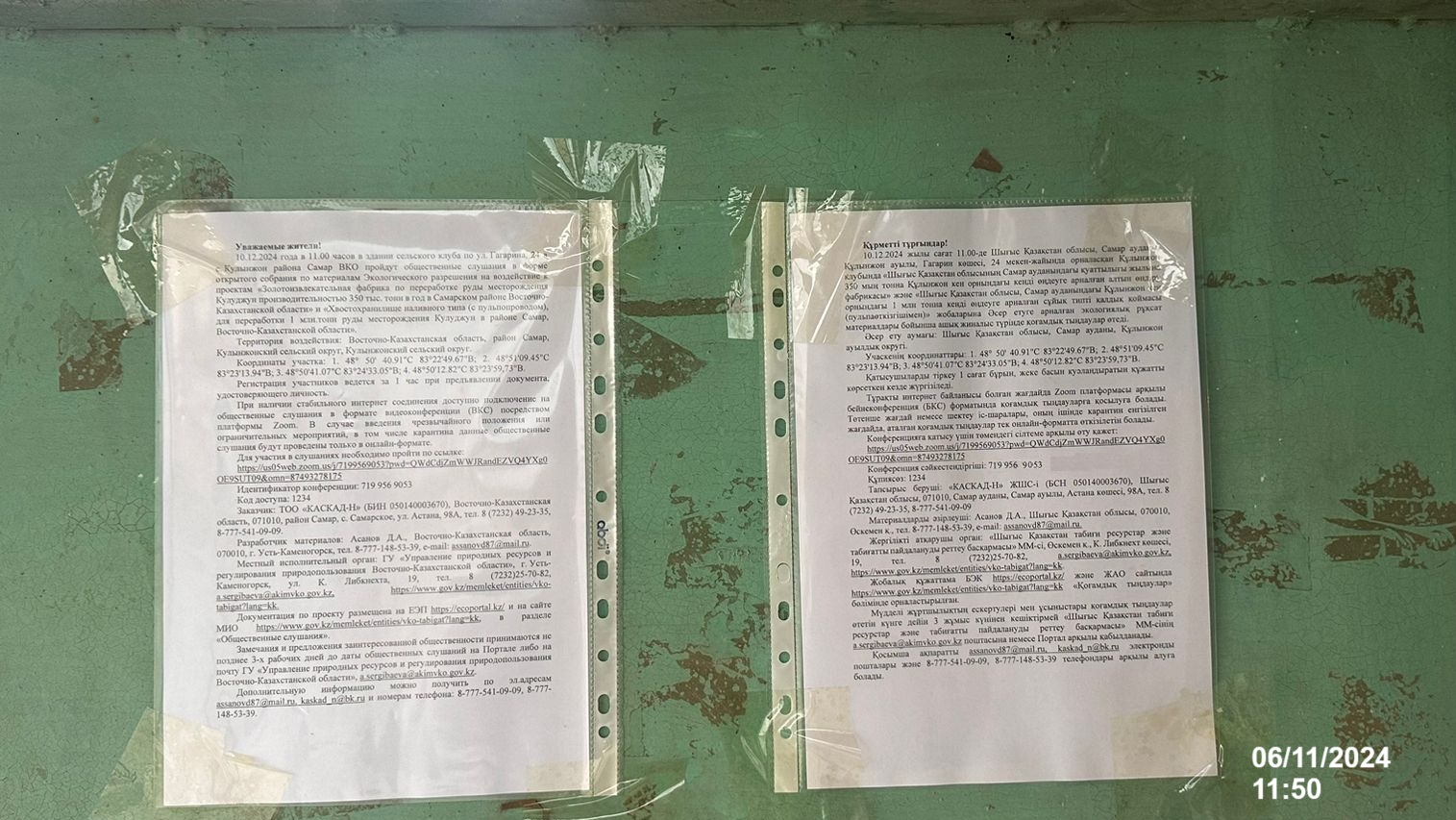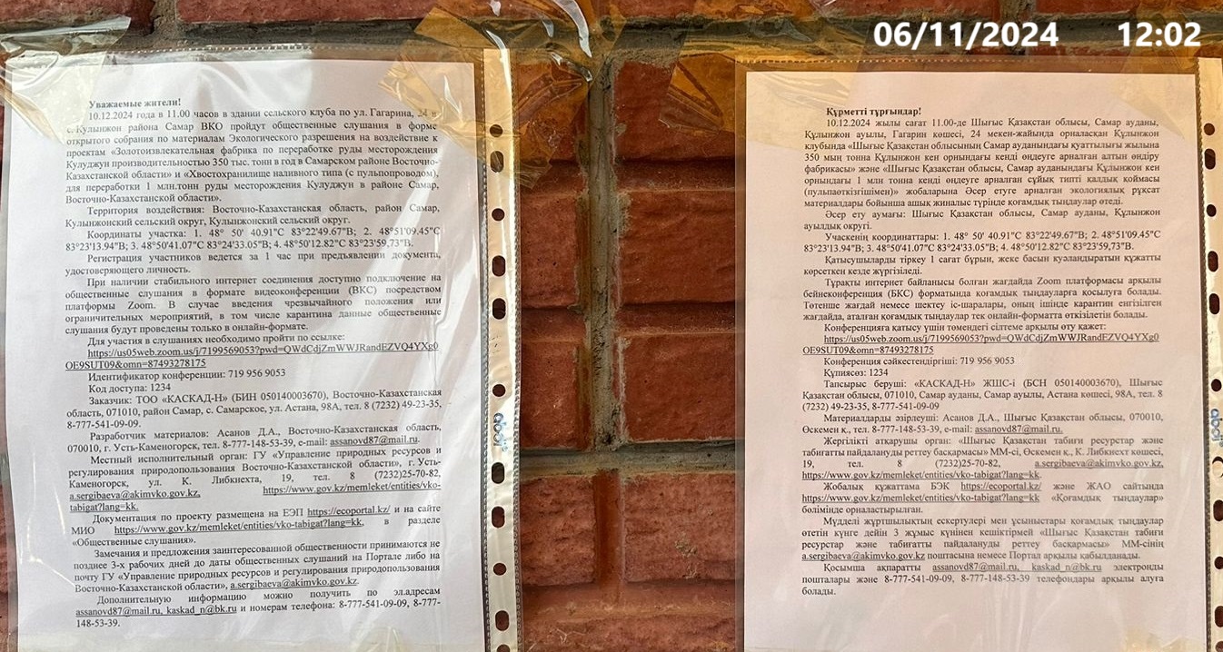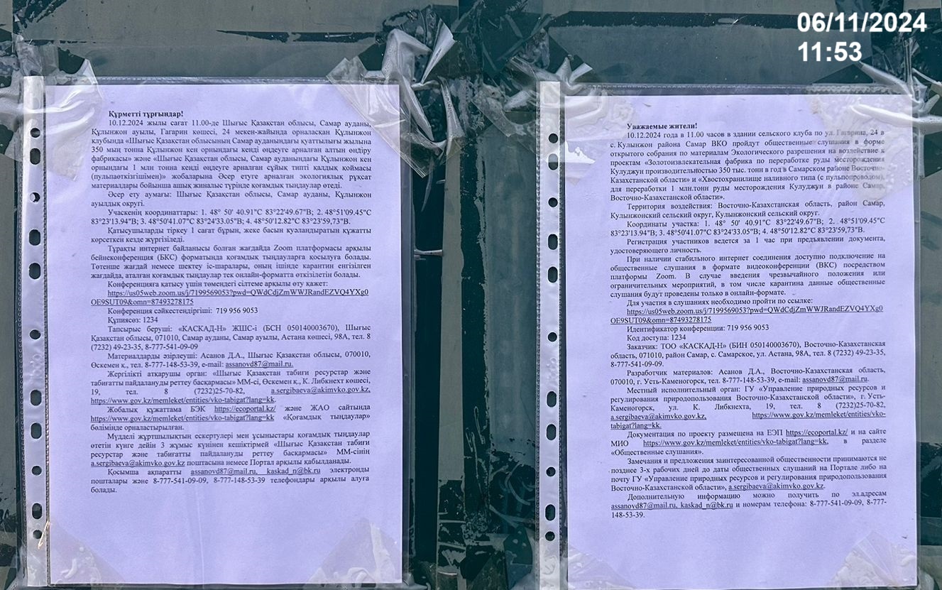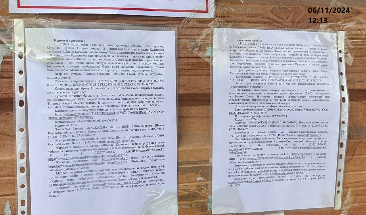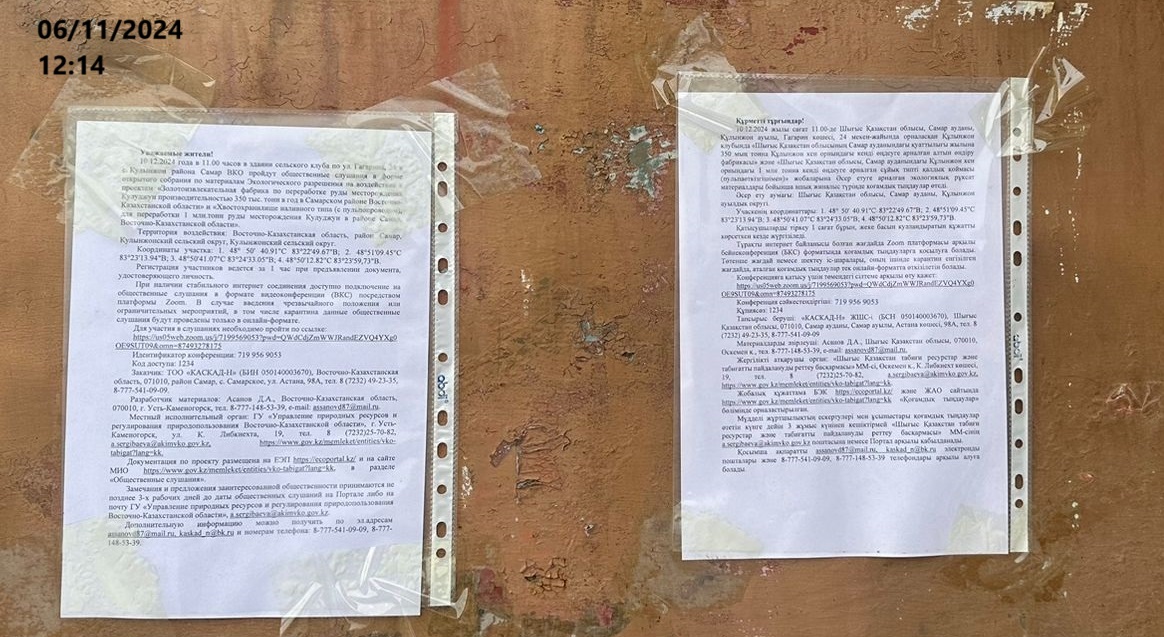 3. Общественные слушания организованны: Управление природных ресурсов и регулирования природопользования Восточно-Казахстанской области, a.eldarbekova@akimvko.gov.kz.,