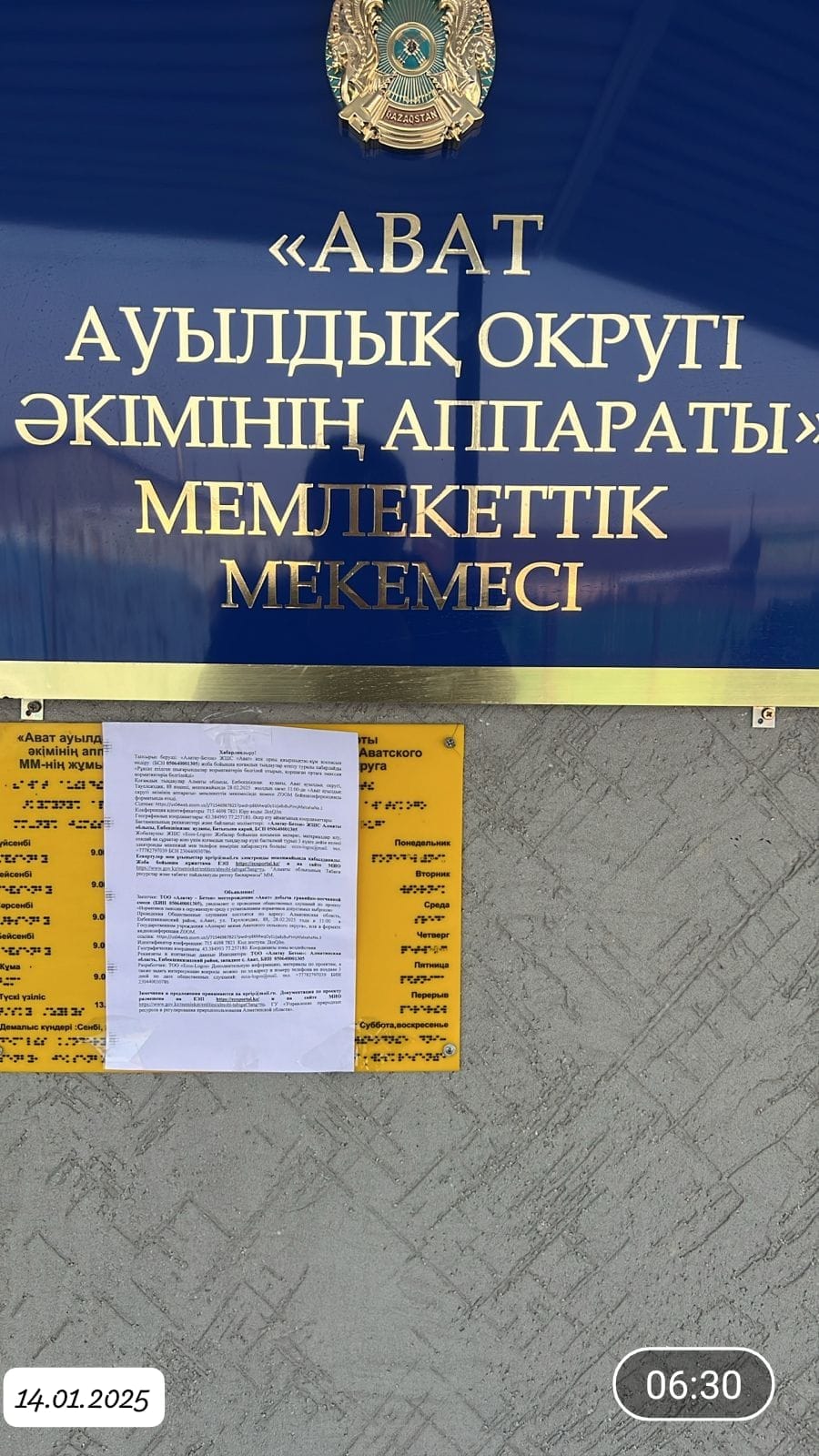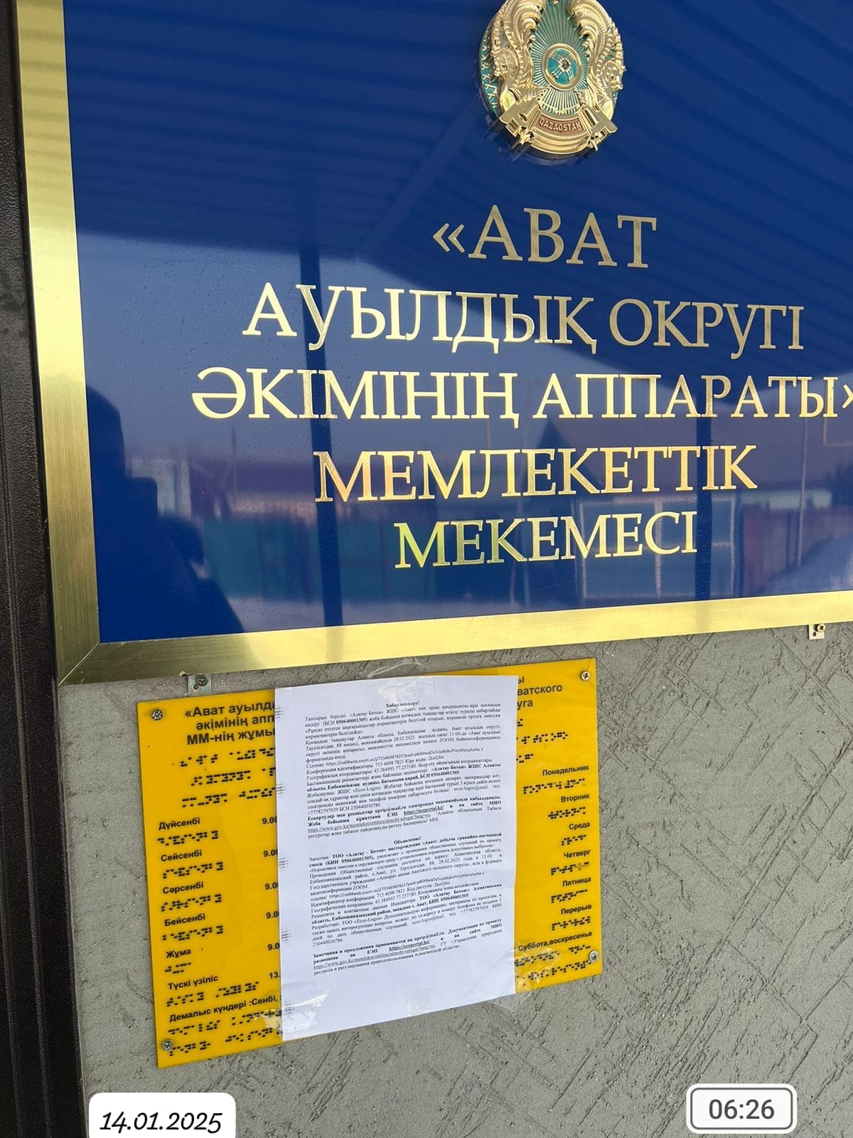 6. Объявление о проведении общественных слушаний на казахском и русском языках будет распространено следующими способами: