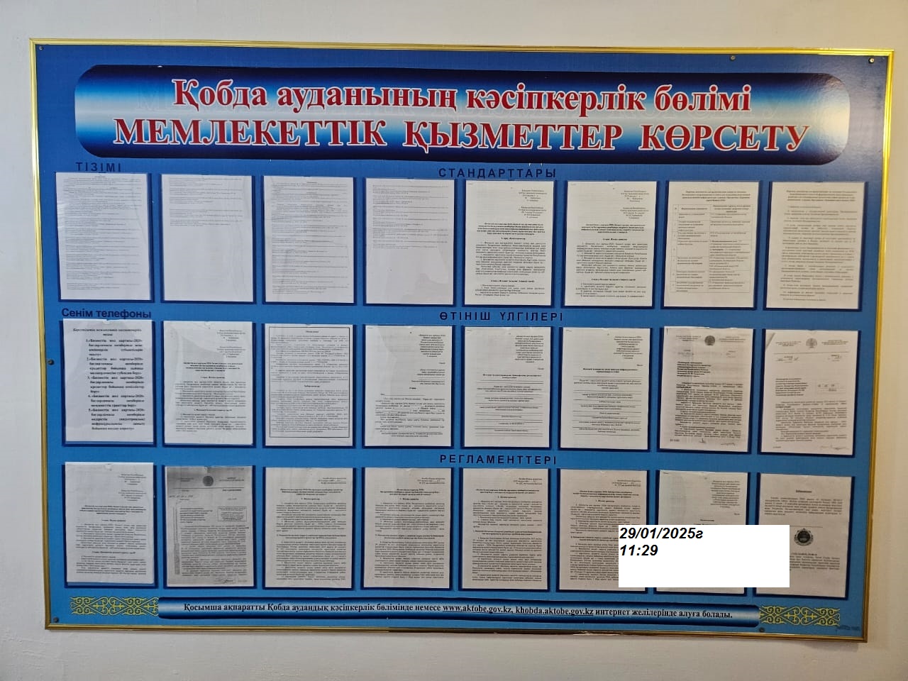 6.3. расположение мест, специально предназначенных для Размещения печатных объявлений (доски объявлений): Актюбинская область, Хобдинский район, Кобдинский с.о., а.Кобда, ул.Астана 48