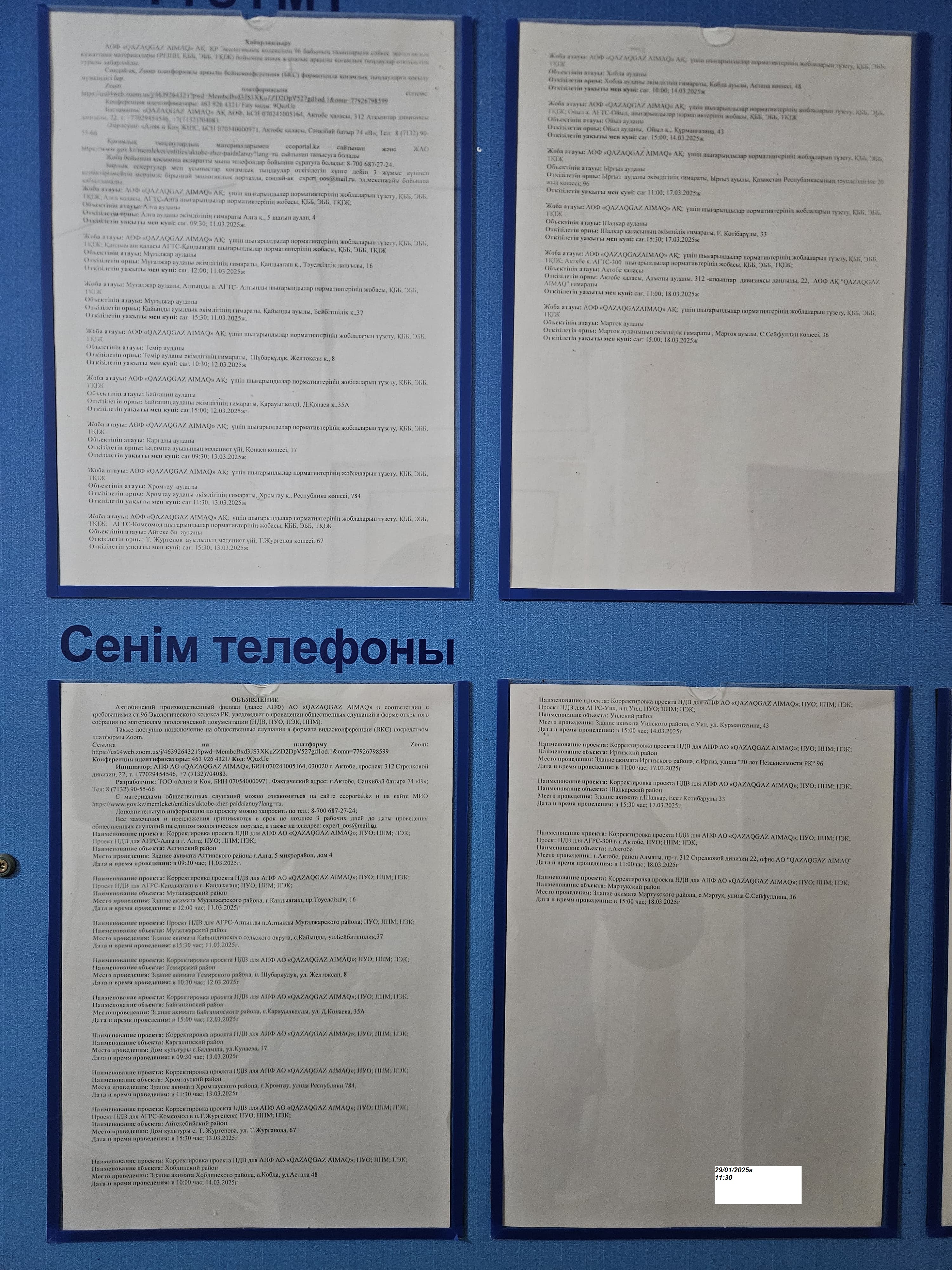 6. Объявление о проведении общественных слушаний на казахском и русском языках будет распространено следующими способами: