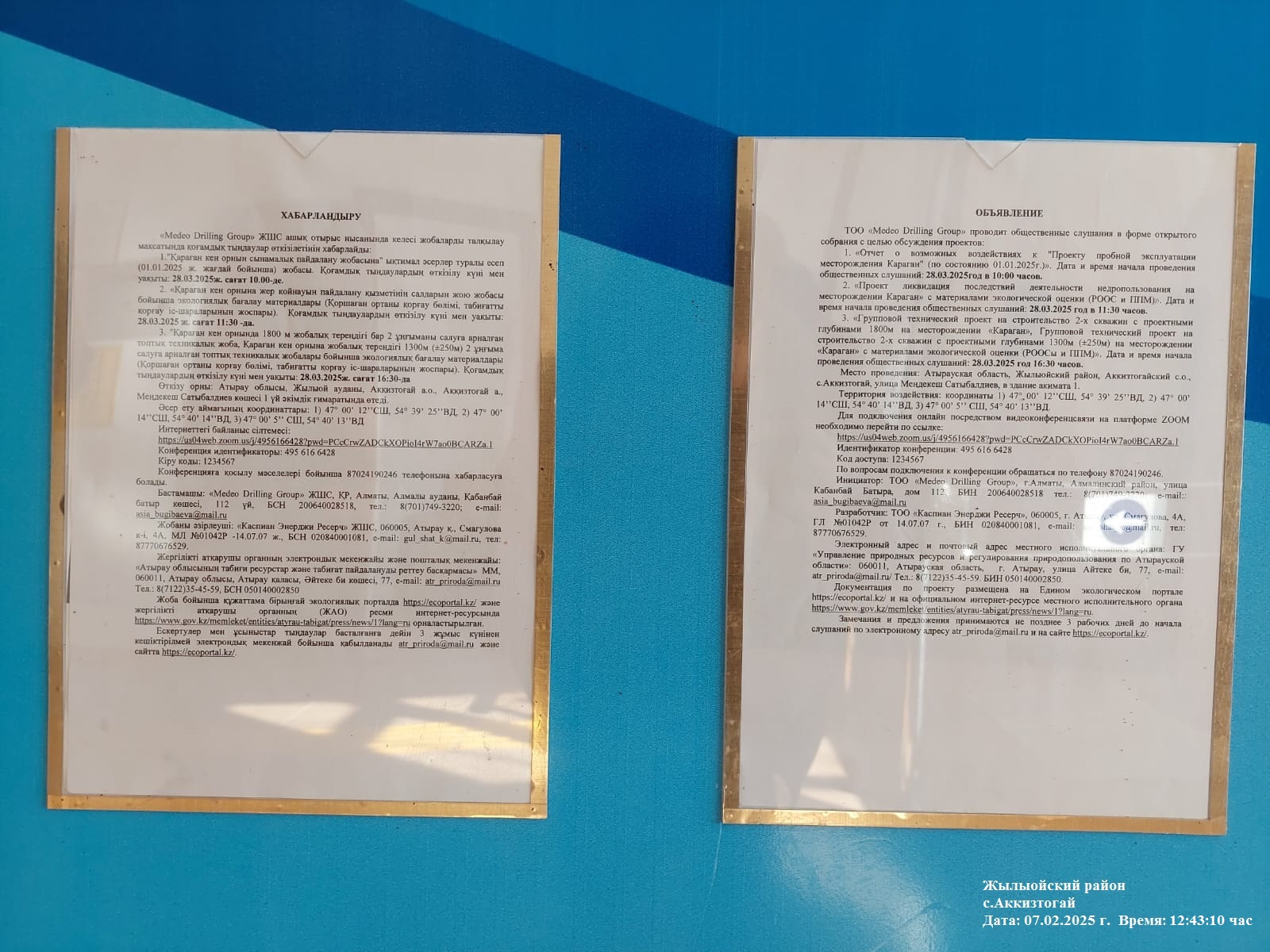 3. Общественные слушания организованны: Управление природных ресурсов и регулирования природопользования Атырауской области, ga.arystanova@atyrau.gov.kz ,