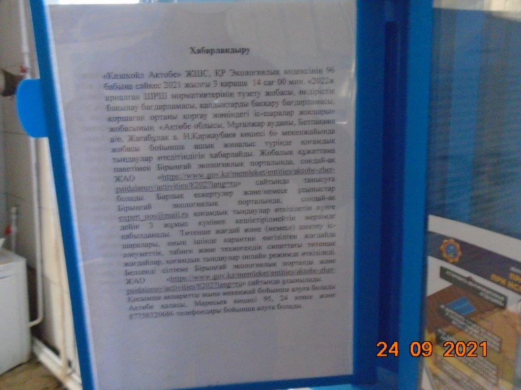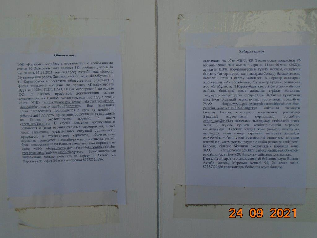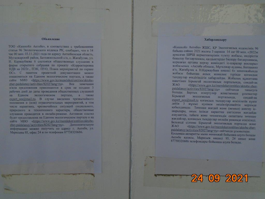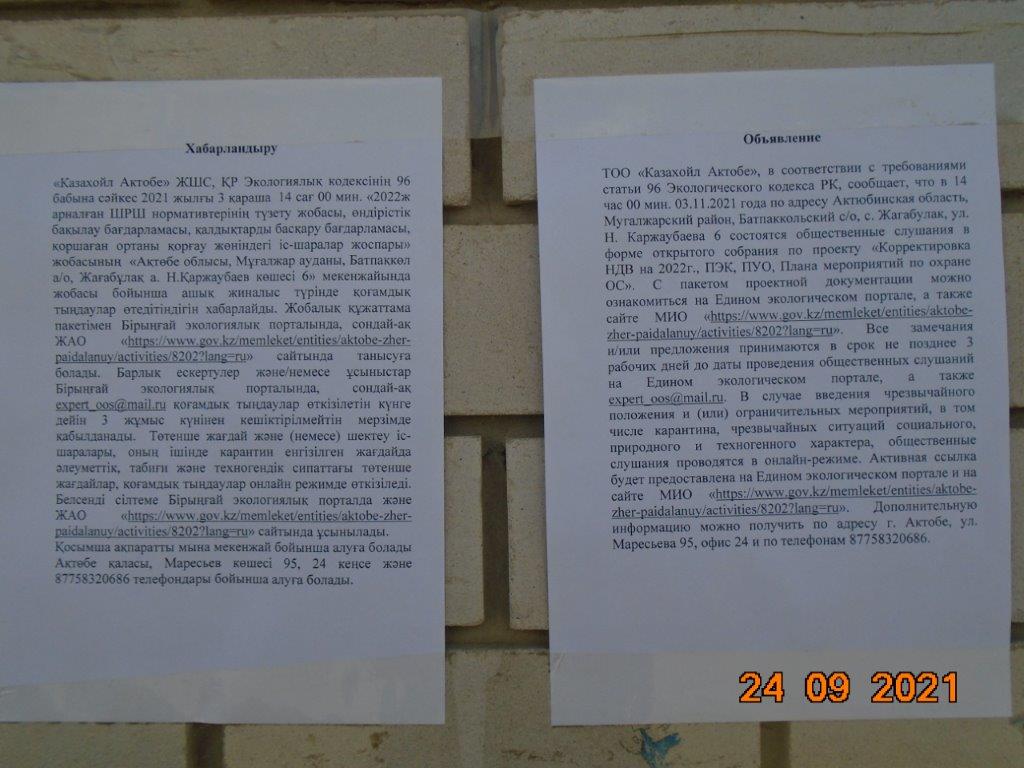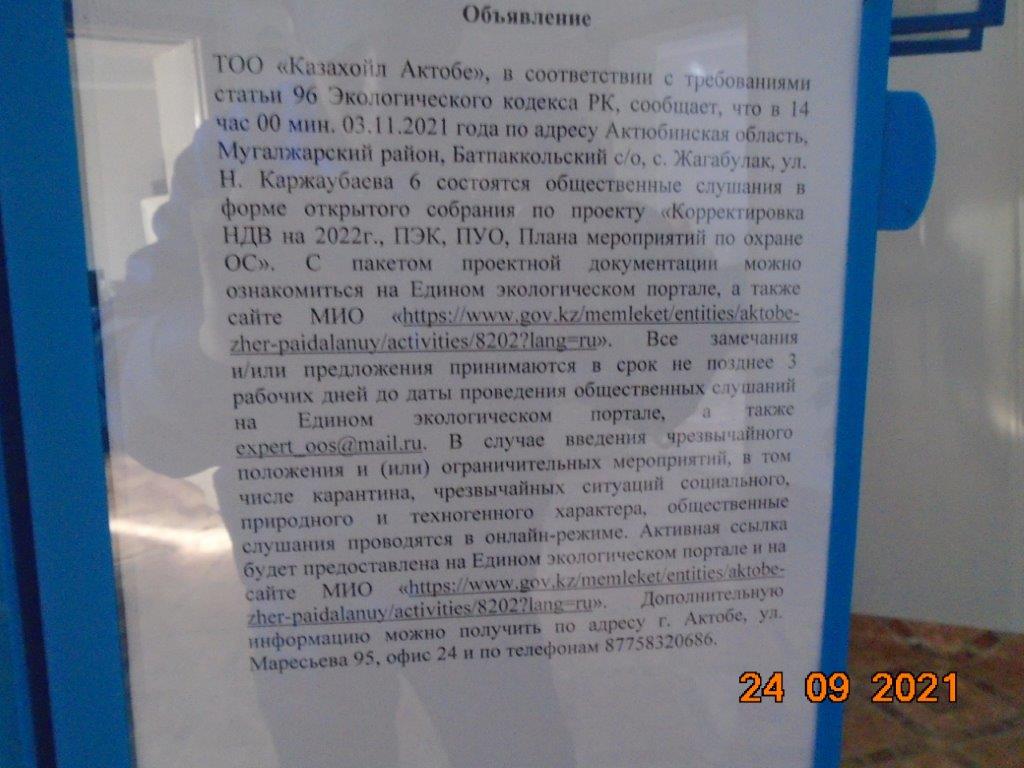 3. Общественные слушания организованны: Управление природных ресурсов и регулирования природопользования Актюбинской области, expert_oos@mail.ru,