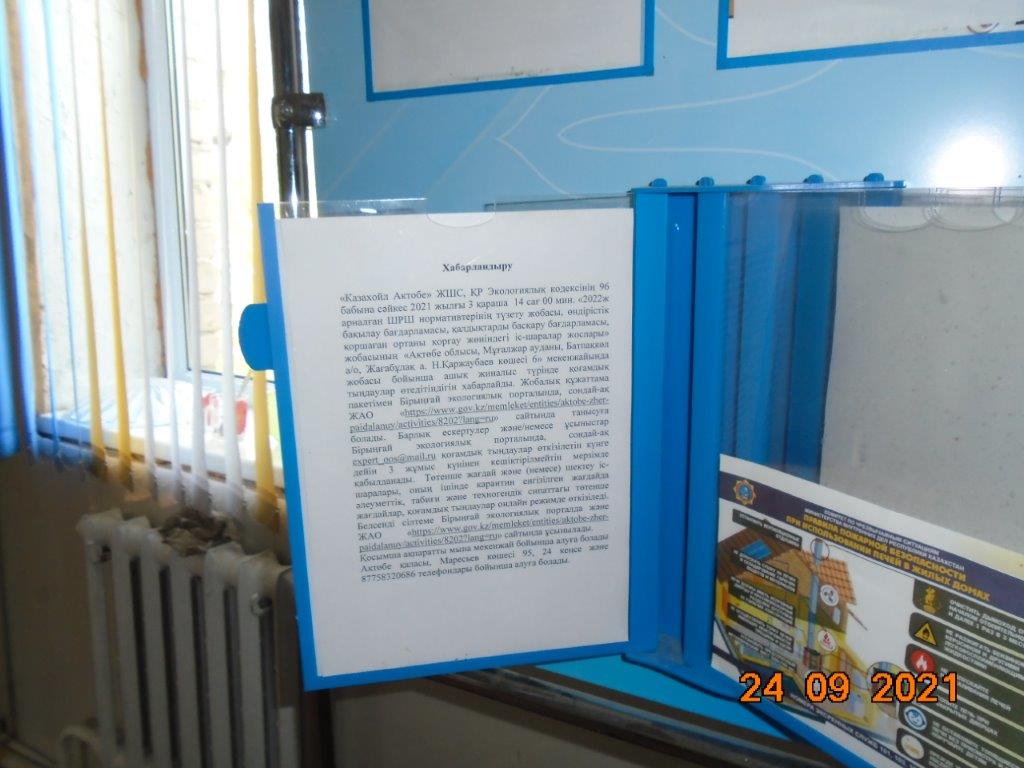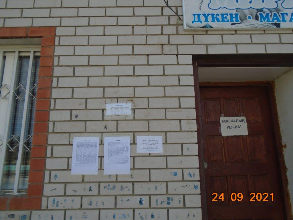 6.3. расположение мест, специально предназначенных для Размещения печатных объявлений (доски объявлений): Актюбинская область, Мугалжарский район, Батпаккольский с.о., с.Жагабулак, ул. Н. Каржаубаева 7