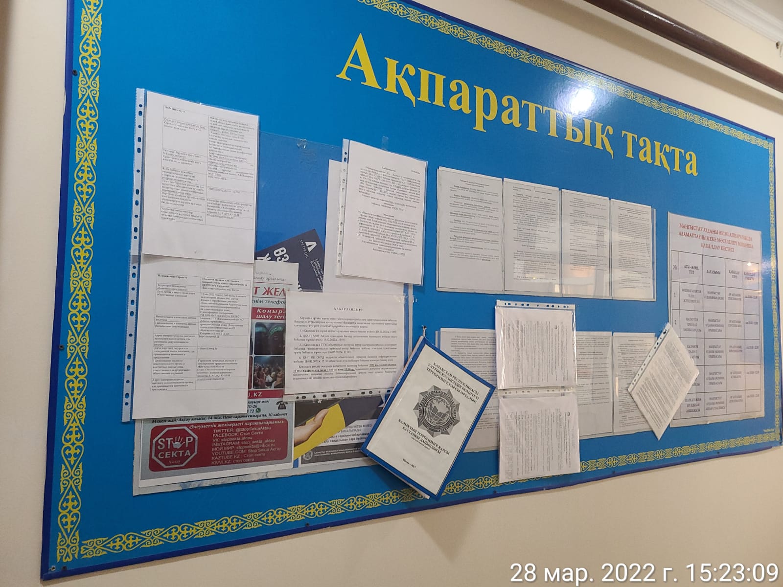 6.3. расположение мест, специально предназначенных для Размещения печатных объявлений (доски объявлений): доска объявлении аппарата акимата пос. Шетпе.