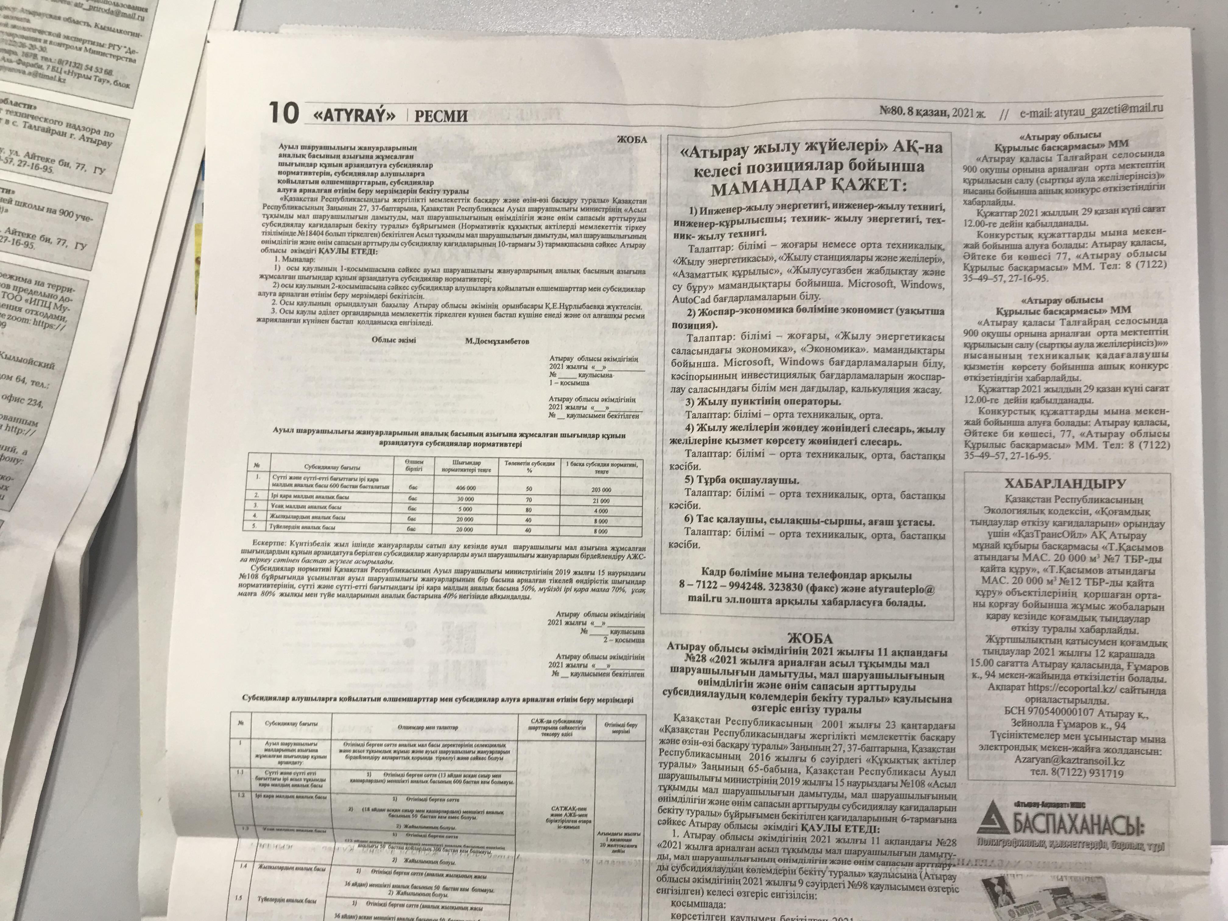 6.2. Наименование теле или радиоканала, где будет размещено объявление: Caspian news Atyrau