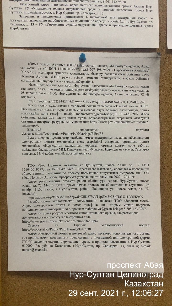 3. Общественные слушания организованны: Акимат Нур-Султана, https://www.facebook.com/nursultanakimat/, http://astana.gov.kz