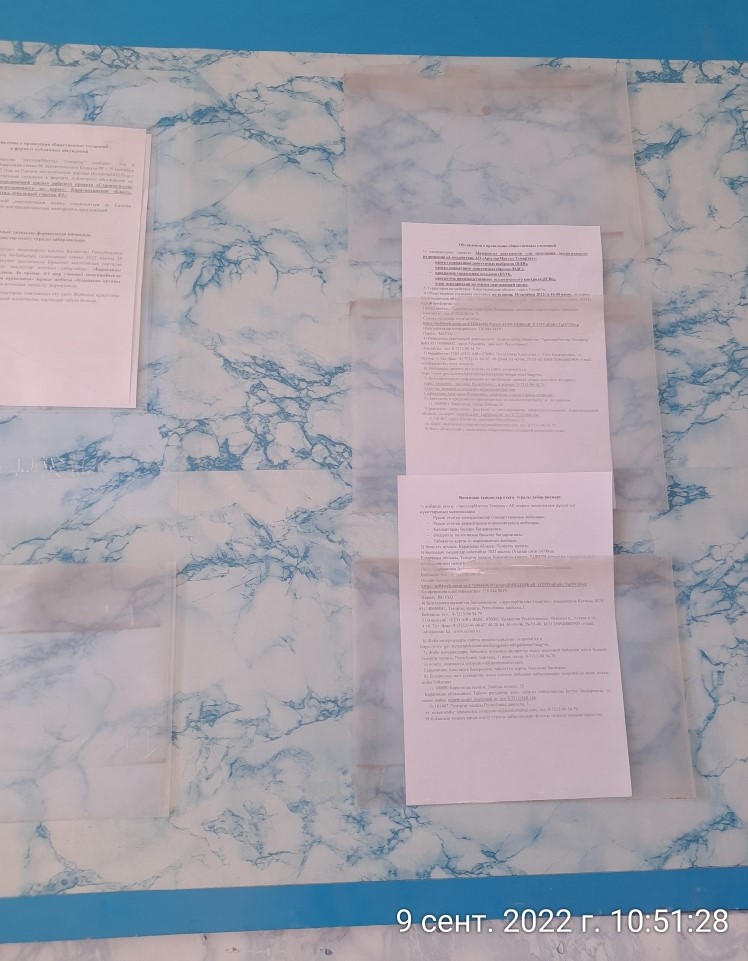 6.3. расположение мест, специально предназначенных для Размещения печатных объявлений (доски объявлений): Доска объявлений возле центральной проходной комбината (г. Темиртау, пр.Республики,1/3). Доска объявлений в Акимате г. Темиртау (г. Темиртау, Бульвар Независимости,12)