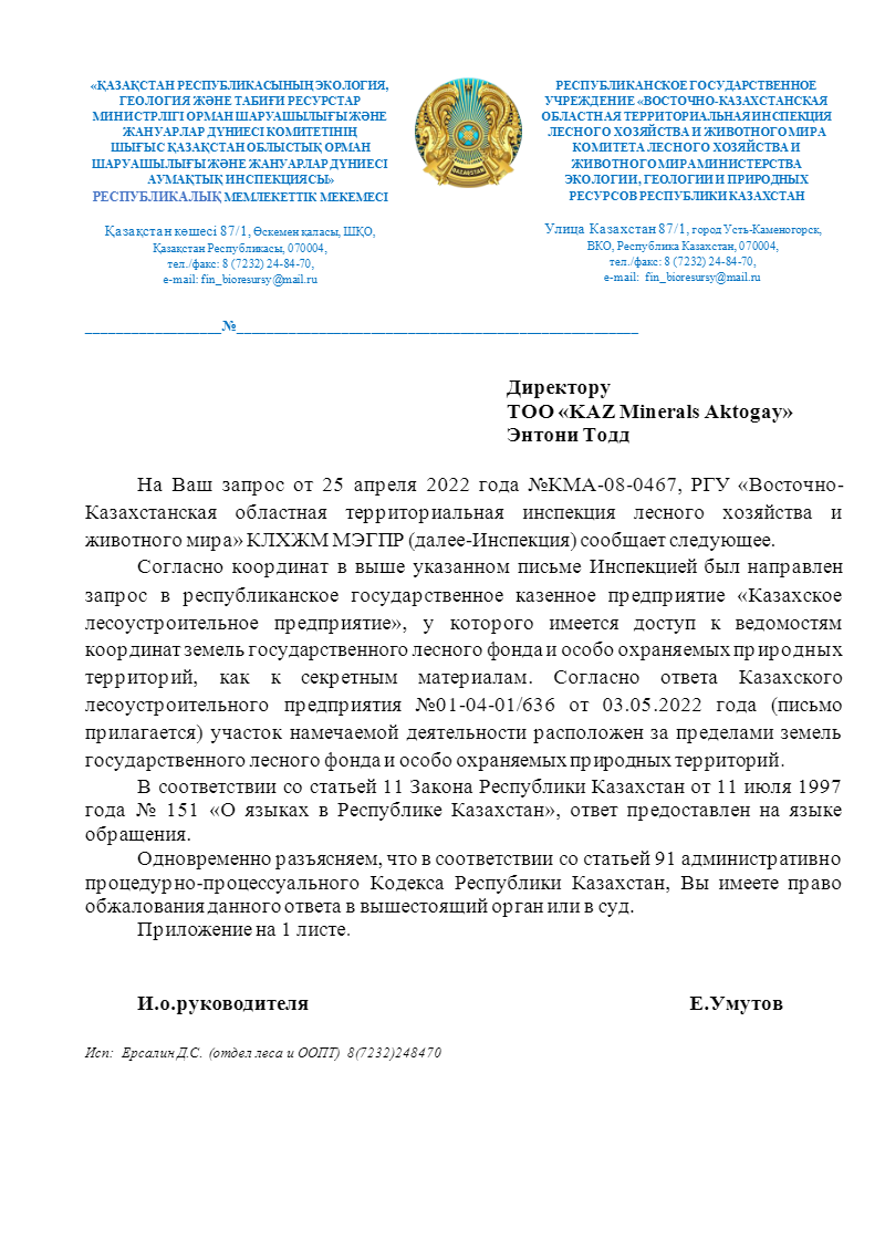 Наименование: ТОО «KAZ Minerals Aktogay»